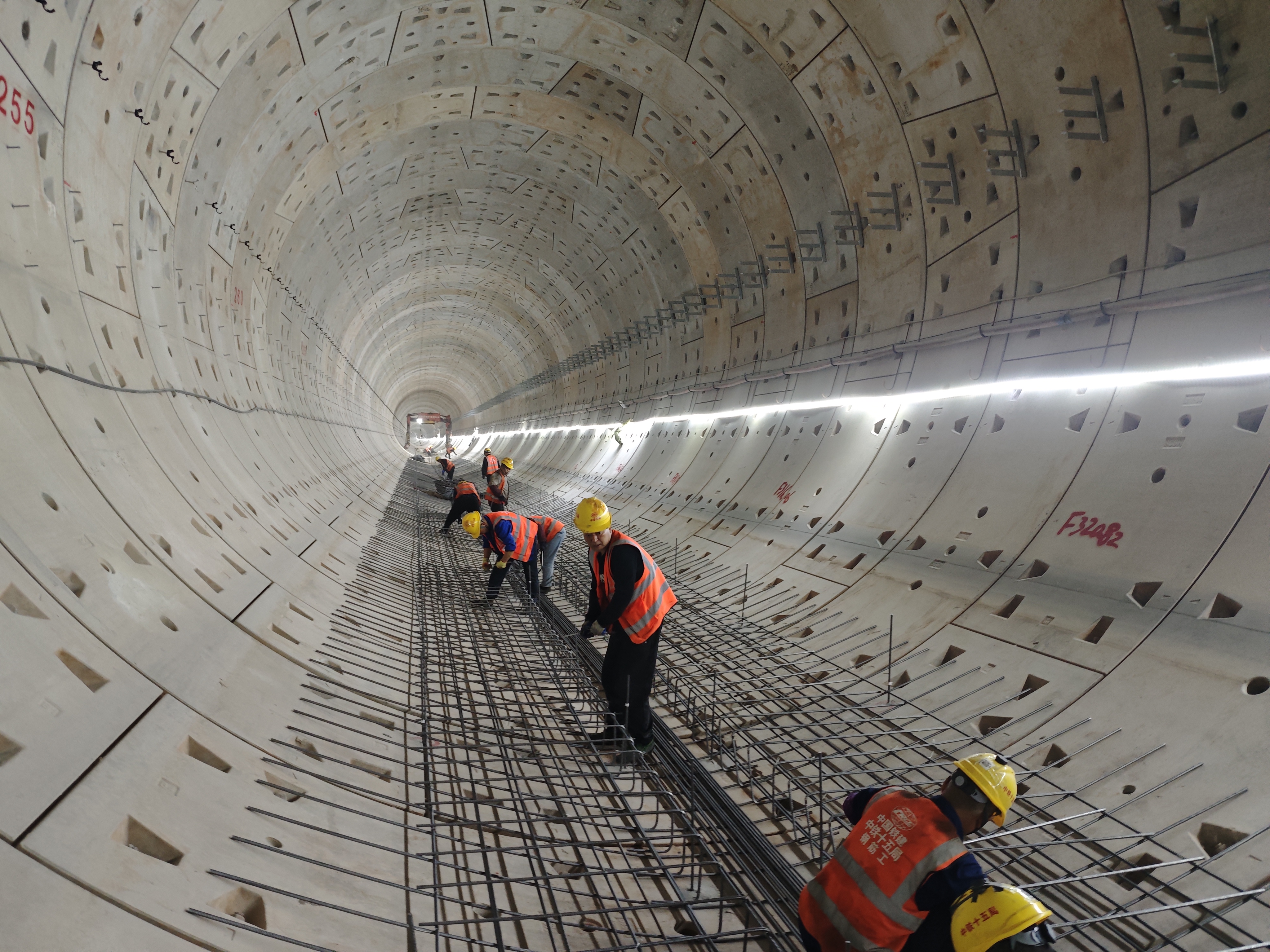 当天14时许,火车北站至骡马市站盾构区间隧道内,两台轮胎式铺轨设备正“站”在隧道壁上。“左一点,再左一点……好,落!”该盾构区间首节轨排精准落位。