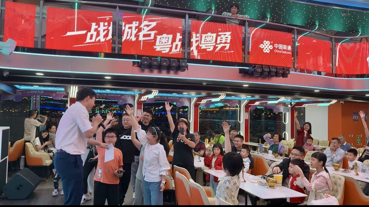 当晚,距离主赛场数公里外的珠江之上,一场别开生面的“水上第二观赛现场”同步开启——320名球迷登上停泊在天字码头的“星舰领航·全运号”游船,在流光溢彩的珠江夜景中,透过超大高清LED巨幕,见证了揭幕战的每一个燃情瞬间。